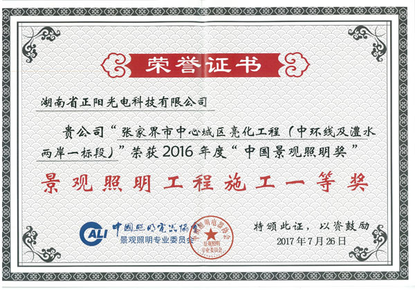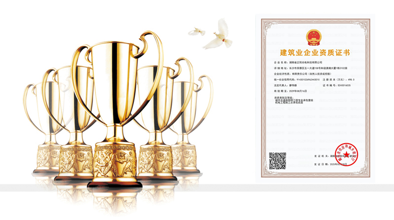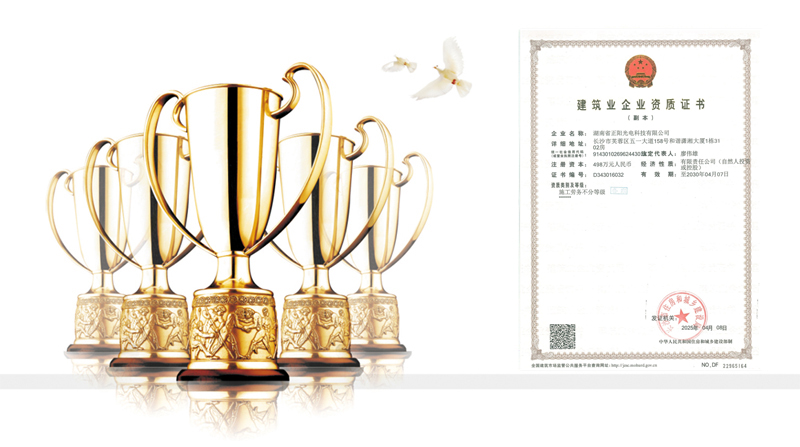 湖南省正陽光電科技有限公司是一家從事亮化工程及大型燈光藝術(shù)的設(shè)計、制作、安裝和維護于一體的專業(yè)化公司。公司資質(zhì)齊全、管理嚴(yán)謹(jǐn)、技術(shù)先進、實力雄厚,取得了城市及道路照明工程專業(yè)承包壹級資質(zhì)、照明工程設(shè)計專項甲級資質(zhì)、機電工程施工總承包貳級資質(zhì)、施工勞務(wù)等資質(zhì)、國家高新技術(shù)企業(yè)、國家“重質(zhì)量·守誠信”示范企業(yè)。